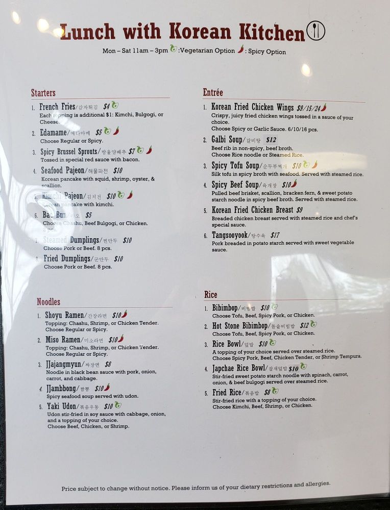 Korean Kitchen Menu